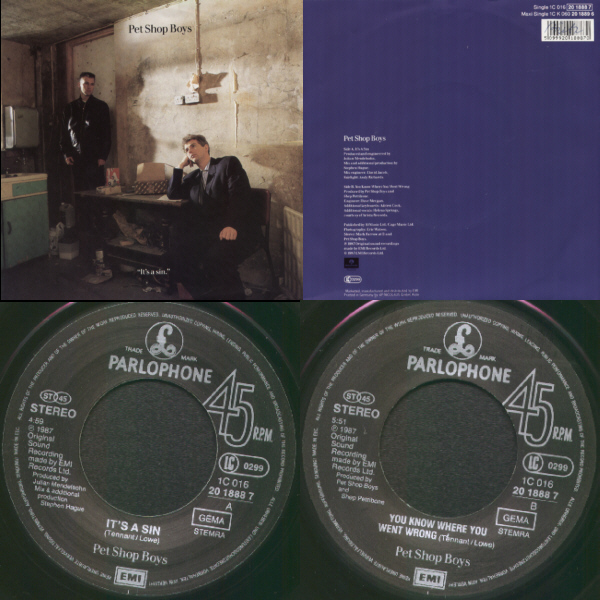 7": 1987 ES (EMI; 006-201888-7) [overprinted "Pet Shop Boys" on upper right corner front]
