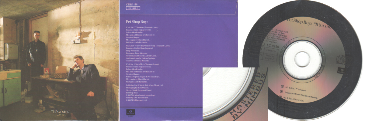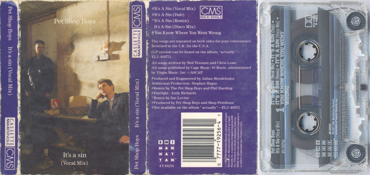 Mixes of It's A Sin" w/correct tracklist as above. Label reads
