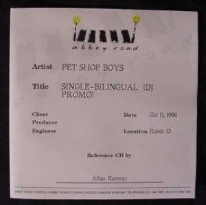 CD-R: 1996 UK (Abbey Road Studios; ??) [promo; 11 Okt 96 loc. Room 13; Ref. CD by Alan Ramsay]