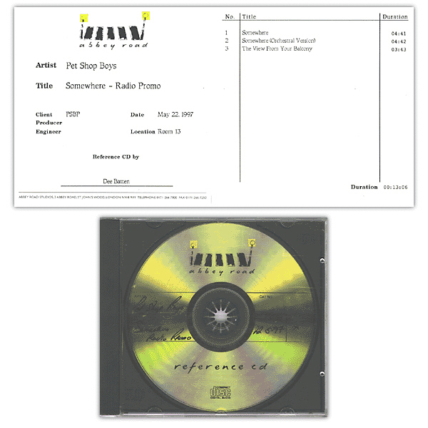 CD-R: 1997 UK (Abbey Road Studios; n/a) [test pressing; "by Dee Batten"; dated 22 May 1997]