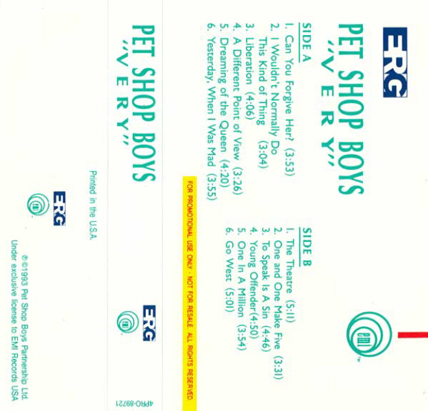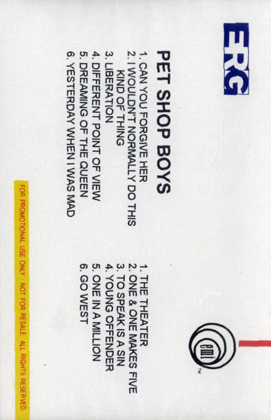 [Discogs.com: Parlophone 13-track promo cassette including excerpts from Very, Go West (full version)
