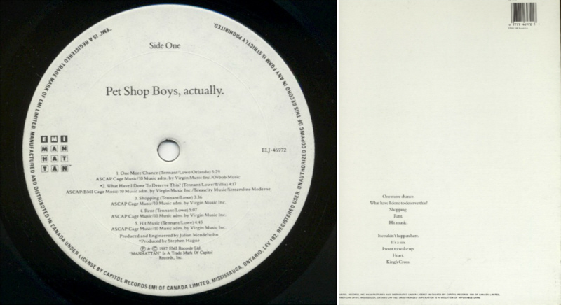 LP+12": 1987 CA (EMI; E1-90263) [limited; w/"Always On My Mind" 12"; "PCSDX 104" on sticker for UK]