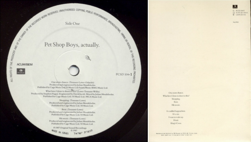 LP: 1987 IL (EMI; PCSD 104) [Israel]