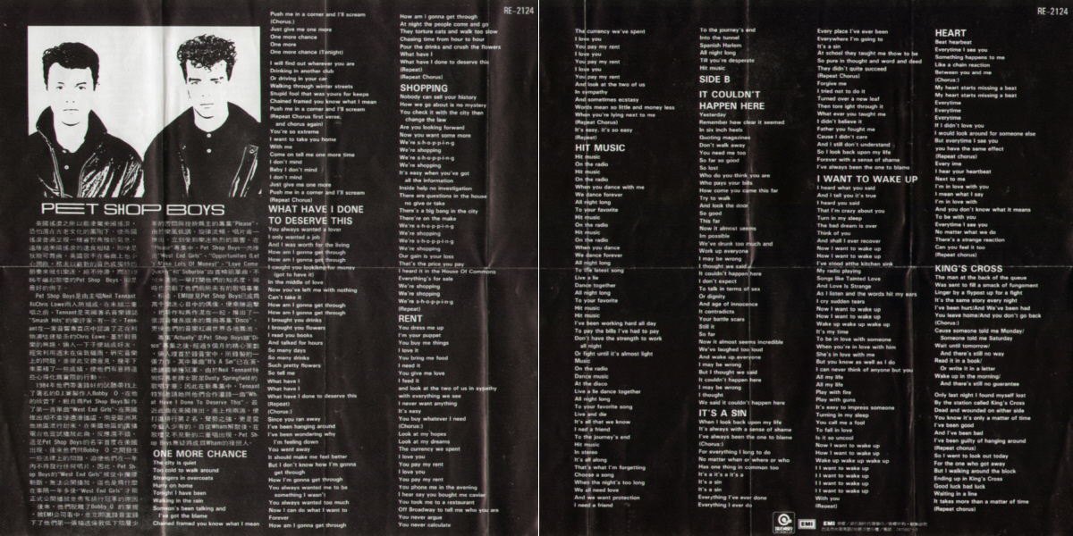 LP: 1987 TW (EMI; RE-2124) [Taiwan; promo only jacket + lyric sheet]