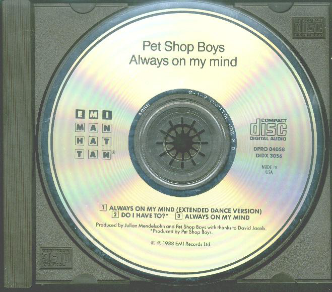 CD+CD5: 1987 US (EMI; E2-790263-2) [limited; w/"Always On My Mind" CD5; "CDPCSDX 104" on sticker for UK]