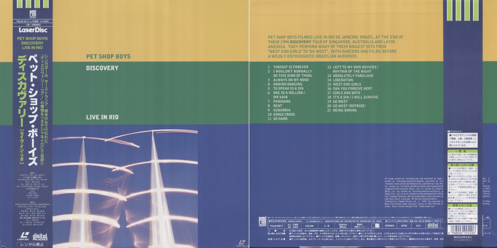 12"LD: 1995 JP (Toshiba-EMI; TOLW-3217) [with OBI; break after "Let's Rock"]