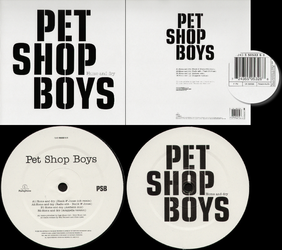 CD-R: 2002 UK (Parlophone; n/a) [titled "Pet Shop Boys - Home And Dry"]