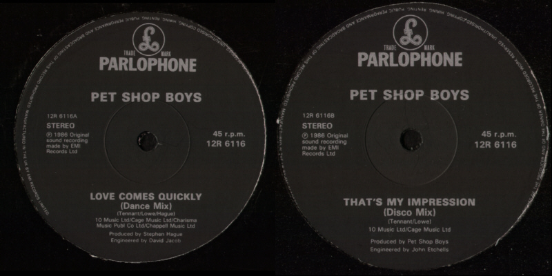 12": 1986 UK (Parlophone; 12R 6116B) [6" picture labels/Chris picture]
