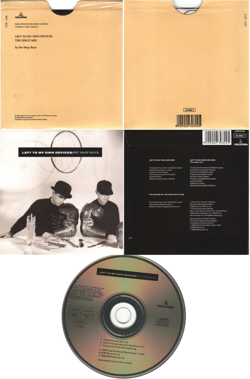 CD5: 1988 UK (Parlophone; CDR 6198) [manila outer sleeve; cardsleeve hats ps; "Made in UK"]
