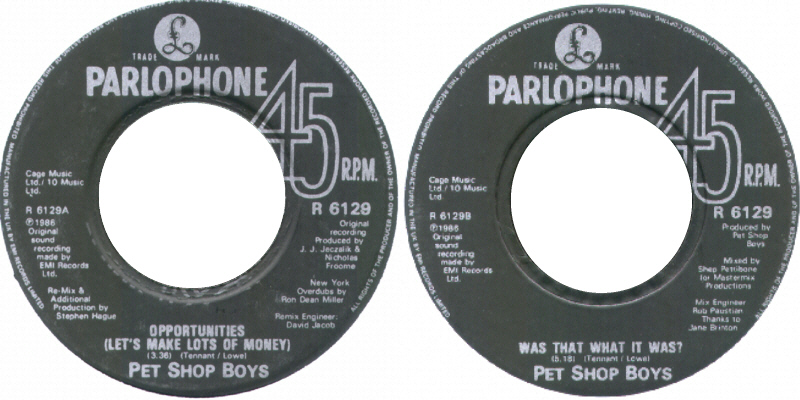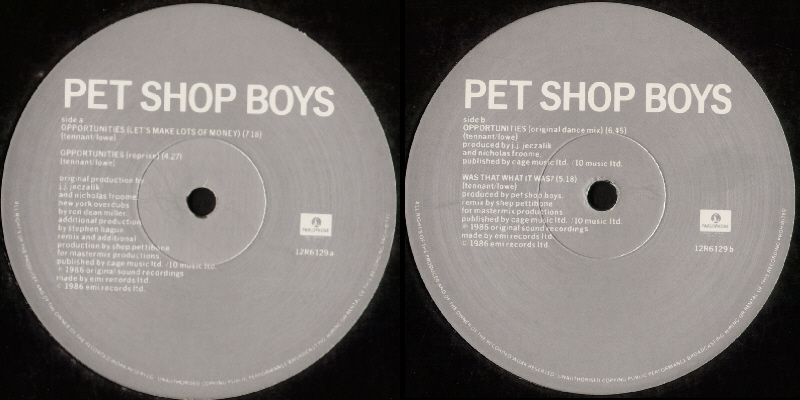 12": 1986 UK (Parlophone; 12R 6129) [promo; mispressing; black a-lbl/std b]