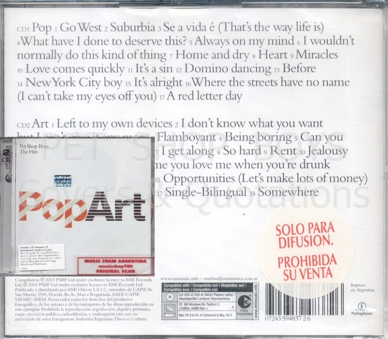 2xCD: 2003 AR (EMI; 7243-5-94837-2 6) [stickered cardps promo; copy cont; "Solo Para Difusion. Prohibida Su Venta"; bootleg]