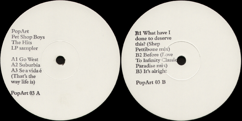 12": 2003 UK (Parlophone; POPART03) [w/l promo; white die-cut ps; "The Hits LP Sampler"; stickered]