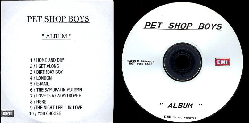 CD-R: 2002 FR (Parlophone; n/a) [titled "Pet Shop Boys Album"; w/imprinted red EMI logo]