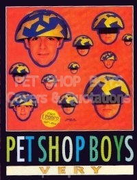 30"x20" poster; N+C in cone hats on white bg with blue eggs; "Very Pet Shop Boys" (UK)