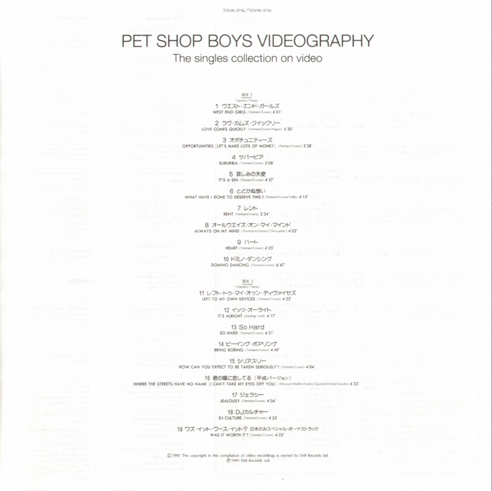 VHS: 1992 JP (EMI/Picture Music Int'l; TOVW-3116) [NTSC; 1 May 92; +one more vid]