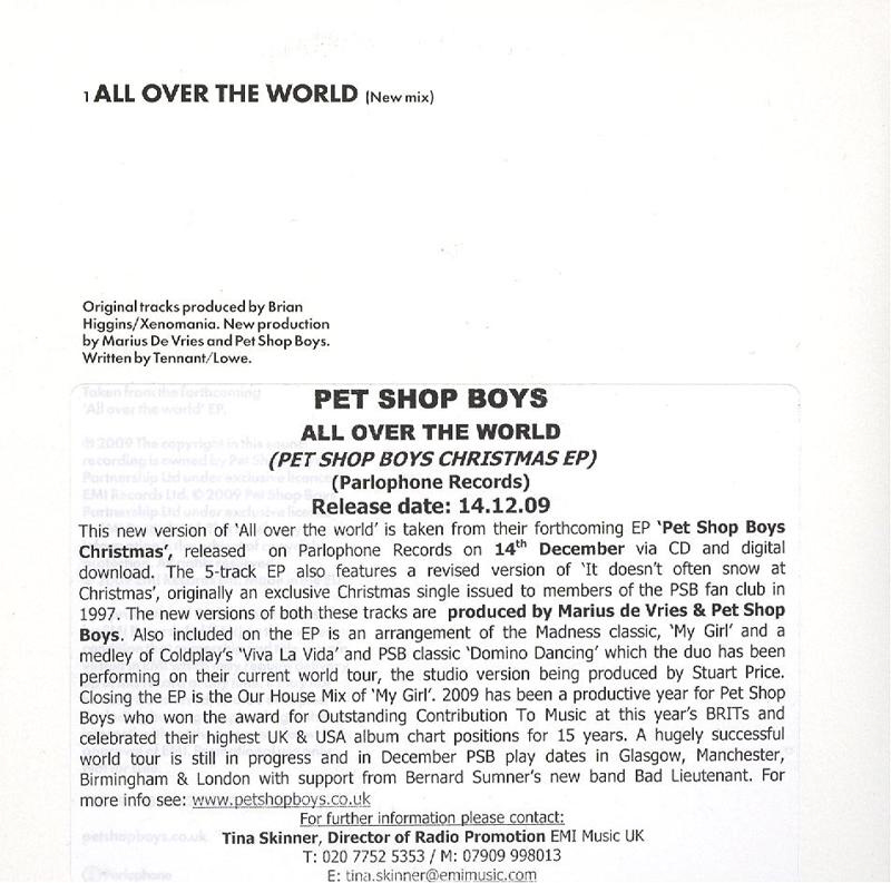CD5: 2009 DE (Parlophone; CDR 6784/5-0999-3-08021-2 4) [14 Dec; dbl cardps; autogr. by PSB; x200]