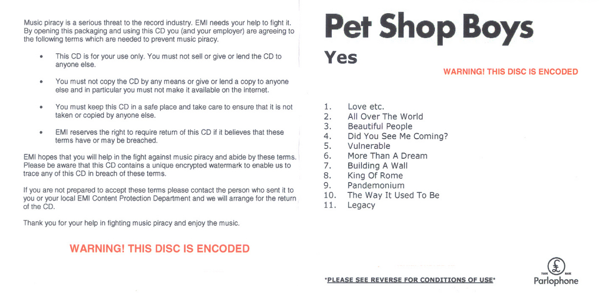 CD-R: 2009 UK (Parlophone; n/a) [promo; Feb 2009; "Yes Sampler"]
